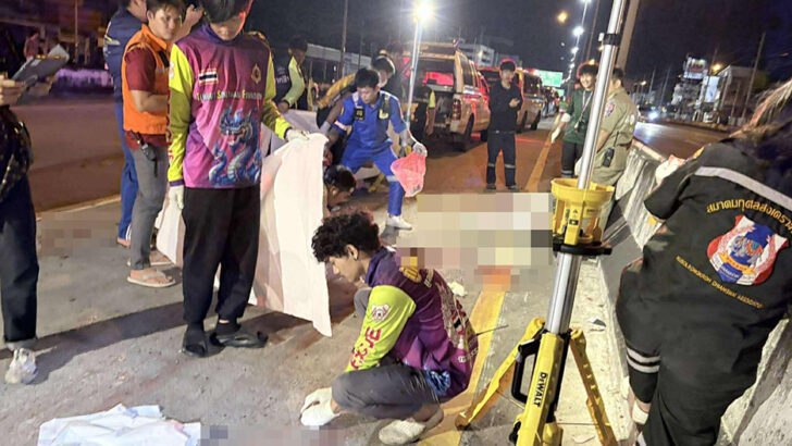 Британский мотоциклист мгновенно погиб после того, как потерял контроль над своим большим мотоциклом и был сбит тремя транспортными средствами в подземном переходе ювенального суда на дороге Чиангмай-Лампанг