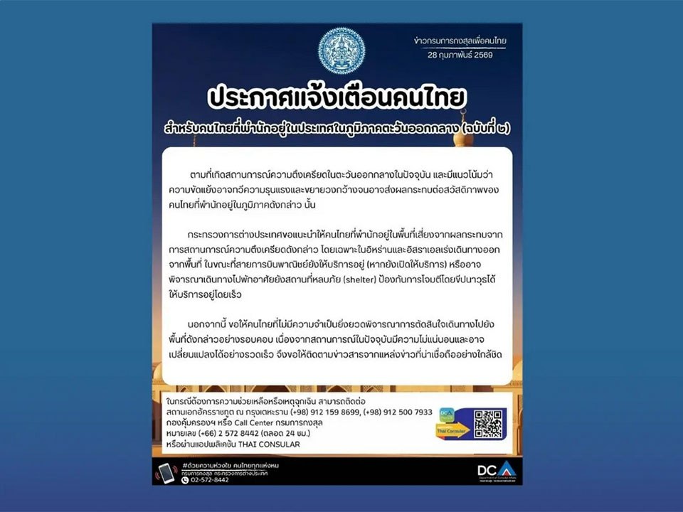 БАНГКОК, Таиланд – Министерство иностранных дел (МИД) выпустило срочное уведомление для граждан Таиланда, проживающих в районах с высоким риском на Ближнем Востоке, особенно в Иране и Израиле, поскольку региональная напряженность демонстрирует признаки значительной эскалации и потенциального расширения. Из-за непредсказуемой и быстро меняющейся природы текущей ситуации с безопасностью, […]