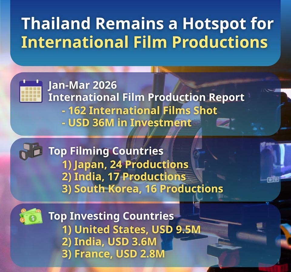 Таиланд привлекает 162 иностранных кинопроизводства в начале 2026 года, обеспечивая более 36 миллионов долларов.