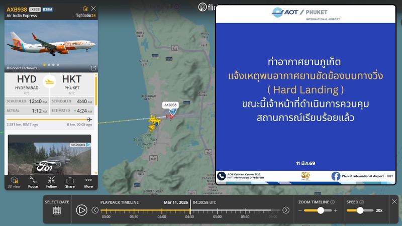Международный аэропорт Пхукета столкнулся с очередным сбоем в графике полетов 11 марта из-за жесткой посадки лайнера Air India Express, выполнявшего прямой рейс из Хайдарабада.