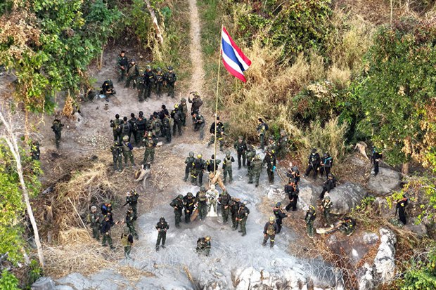 Тайские войска были наготове в понедельник после того, как ночью была замечена лесная пожара на границе рядом с Прасат-Кханой в провинции Сурин, сопровождаемая звуком взрыва боеприпасов внутри Камбоджи.