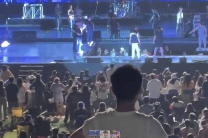 Промышленник по производству напитков хорошо чувствует себя после падения со сцены на концерте