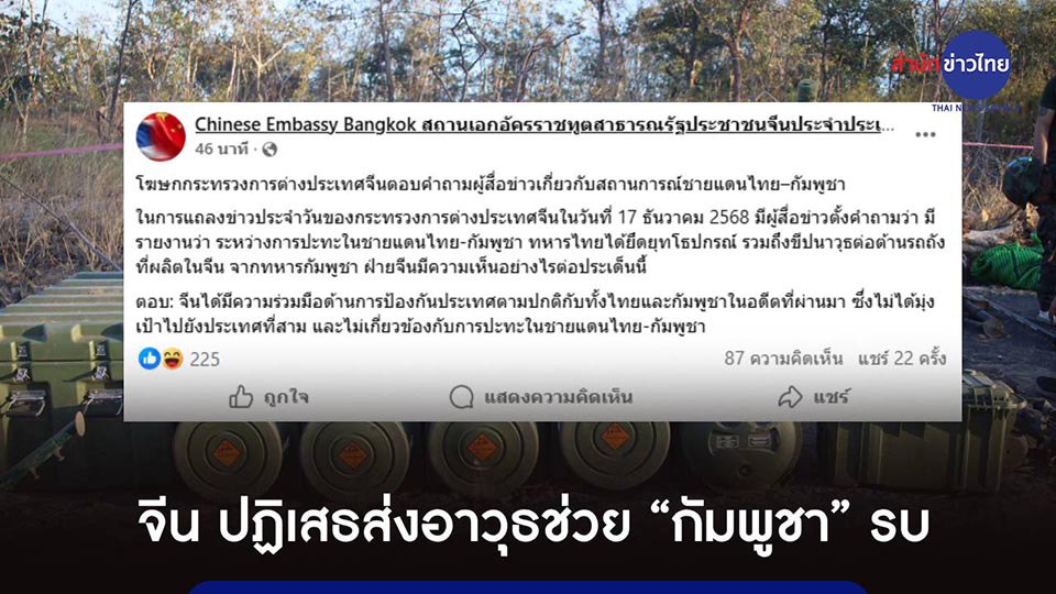 БАНГКОК, Таиланд – Китай в среду опроверг обвинения в отправке оружия для поддержки Камбоджи в недавних пограничных столкновениях с Таиландом, уточнив, что сотрудничество в области обороны с обеими государствами Юго-Восточной Азии является историческим и не направлено против какой-либо третьей стороны. Заявления, сделанные представителем Министерства иностранных дел Китая и опубликованные китайским посольством в Бангкоке, следуют за […]