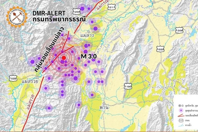ЧИАНГ РАЙ — Жители нескольких районов этой северной провинции, как сообщается, почувствовали толчки от землетрясения магнитудой 3.0 в районе Мэ Суаи в 5:31 утра в четверг.