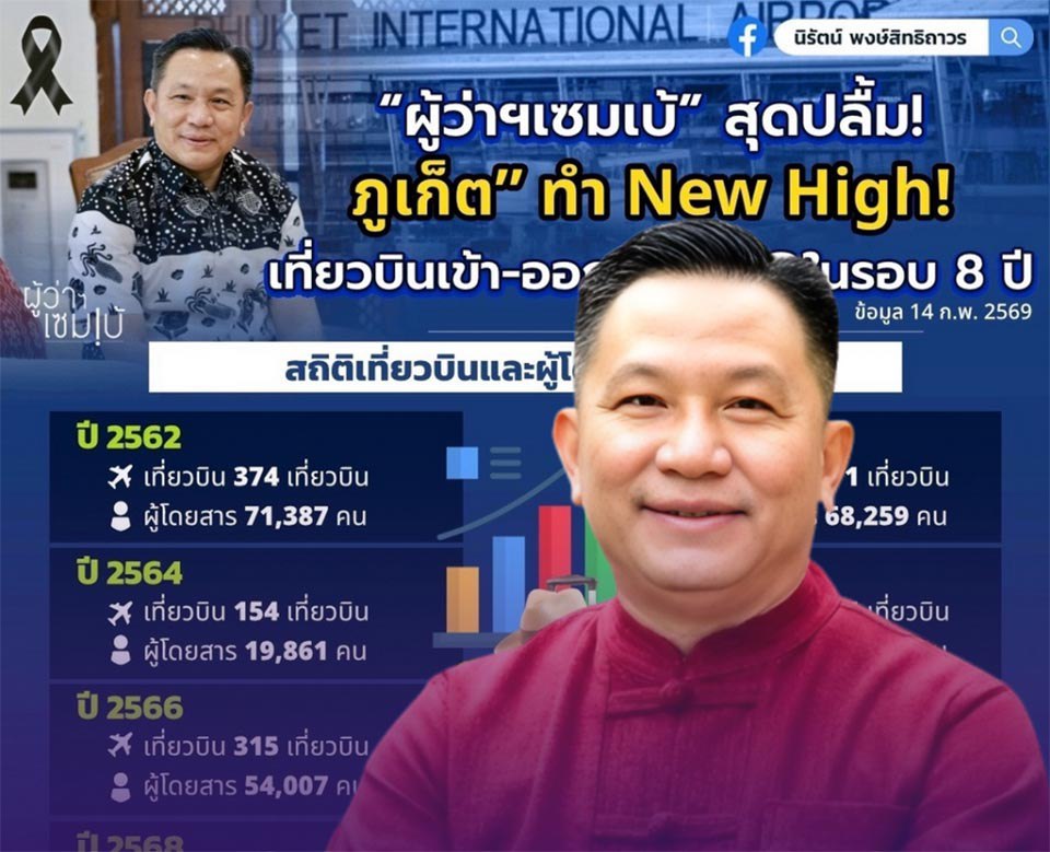 ПХУКЕТ, Таиланд – Провинция Пхукет зафиксировала наивысшие показатели по числу рейсов и пассажиров за восемь лет, превысив доковидные уровни и сигнализируя о постоянном восстановлении туризма в начале 2026 года. Последние данные дополнительно подтверждают роль острова как одного из главных международных ворот Таиланда. На 14 февраля 2026 года Пхукет зарегистрировал 393 взлета и посадки за один […]
