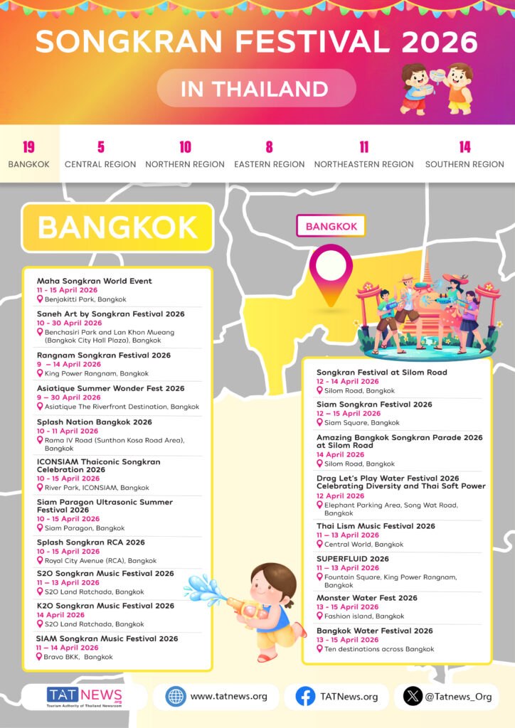 Таиланд подтверждает, что фестиваль Сонгкран 2026 года пройдет по всей стране, приглашая иностранных посетителей испытать тайский Новый год через водные празднования, культурные традиции и общественные торжества. От Бангкока до региональных направлений фестиваль продемонстрирует всемирно признанное наследие Таиланда ЮНЕСКО, сочетая подлинные ритуалы с современными событиями, укрепляя уверенность в поездках по Королевству.