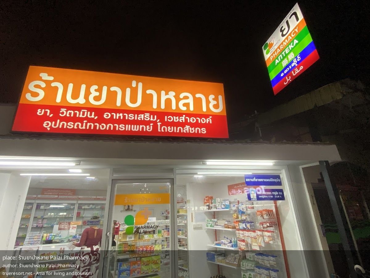 ร้านยาป่าหลาย Palai Pharmacy — открыты до 23:00 ежедневно, дружелюбные фармацевты и большой выбор, но один отзыв предупреждает об ошибочных советах