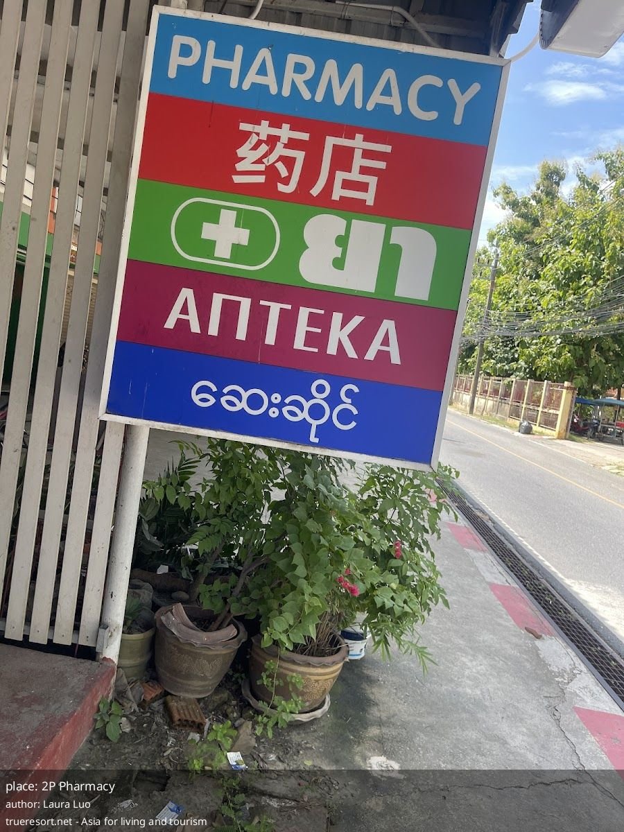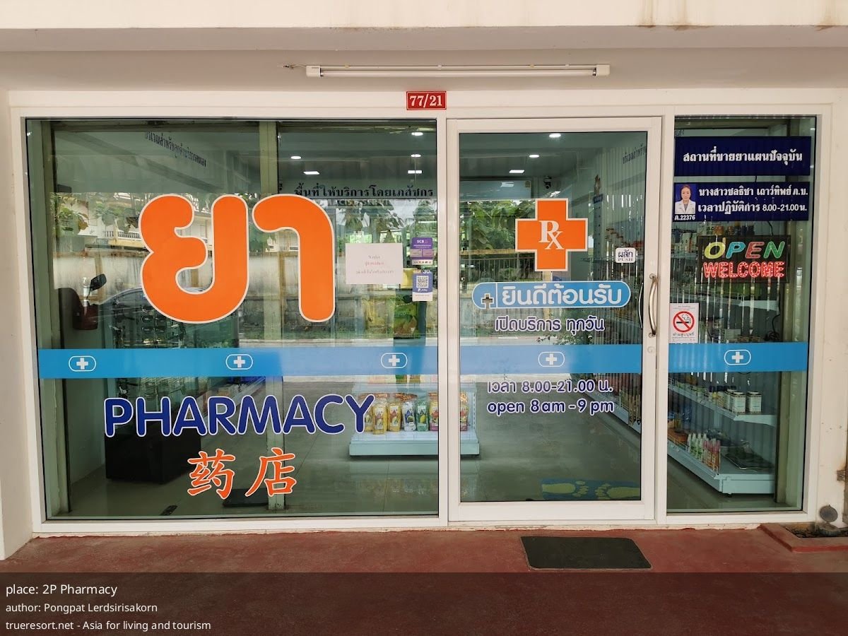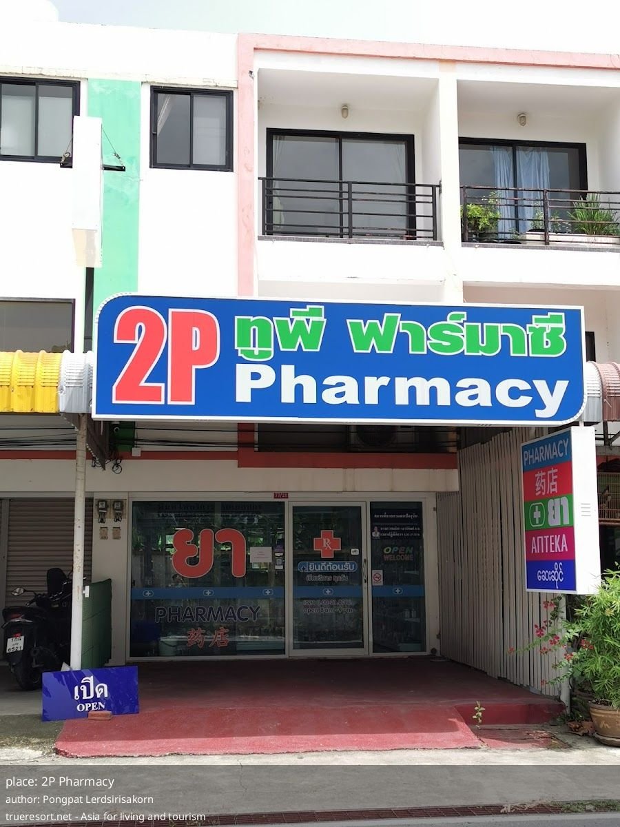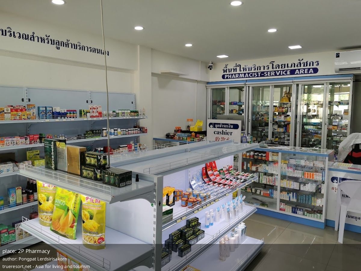 Рядом расположены Mini Big C и 7-Eleven, несколько кафе и рынок Wildflower Forest Thailand. Это важно: если цена или политика в 2P Pharmacy вызывает сомнение, поблизости есть точки, где купить средства первой необходимости или уточнить стоимость аналогичных товаров.