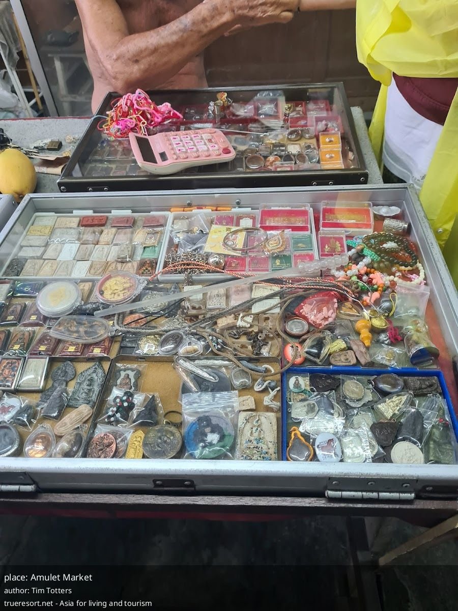 Продаются амулеты и сопутствующие буддийские/местные артефакты; на месте также ведется покупка у частных лиц — есть торговцы, которые покупают и продают коллекции.