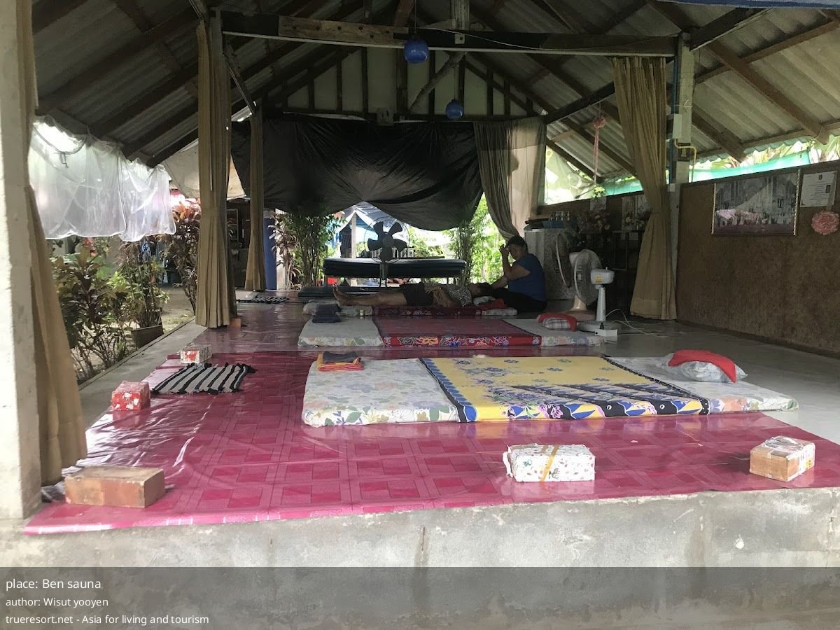 - Прямые упоминания цен: доступ к сауне в течение дня якобы стоит меньше 5 долларов; отдельно указан массаж за 250 бат.