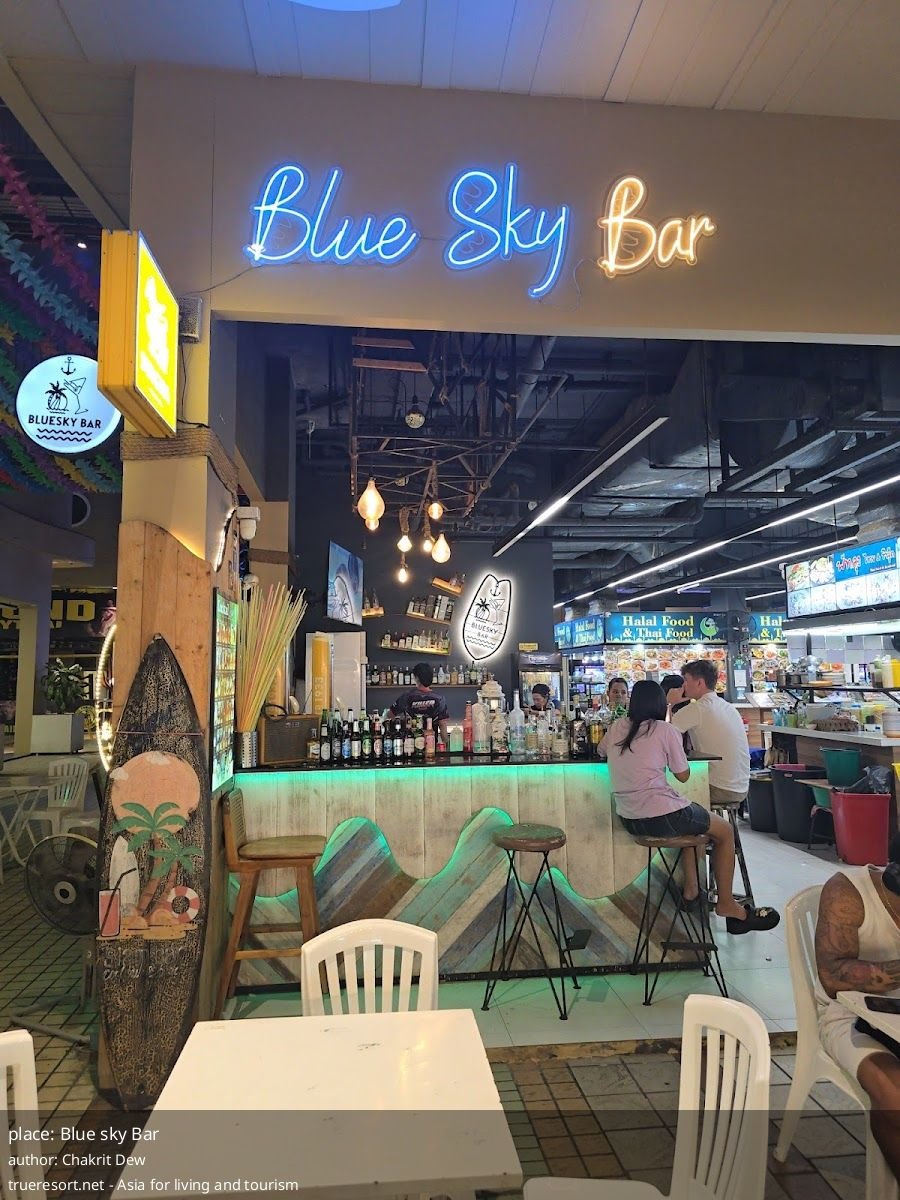 Отзывчивые посетители называют бар хорошим местом для компании, семьи и отдыха в спокойном формате; короткие отзывы подчёркивают, что это место подходит просто чтобы посидеть и выпить. Наличие рынка и близость пляжа делают Blue sky Bar удобным вариантом как для туристов, так и для тех, кто хочет избежать переполненных заведений.