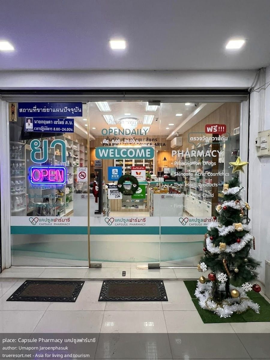 Если вам важны личная консультация и доброжелательное обслуживание, Capsule Pharmacy แคปซูลฟาร์มาซี выглядит надёжным выбором; при плановом визите достаточно доверять указанным рабочим часам, а при походе рано утром или в экстренной ситуации лучше предварительно позвонить.