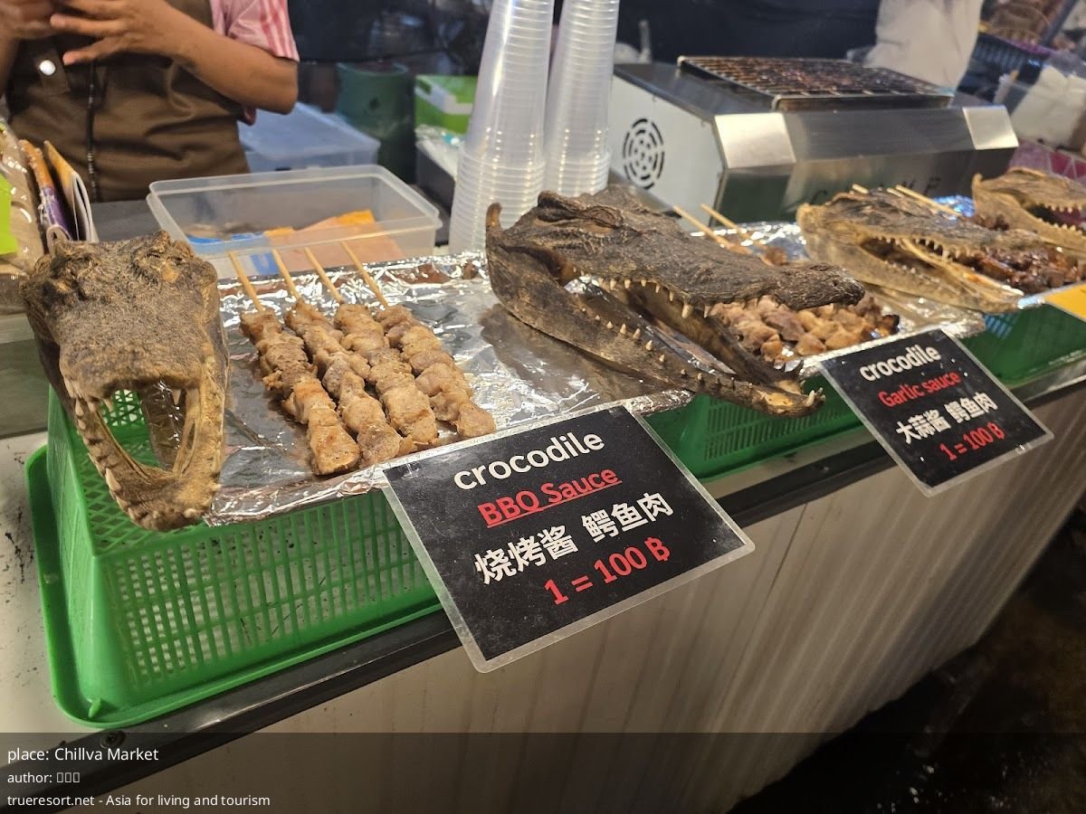 - Еда: гриль — морепродукты и курица, тропические фрукты, десерты, кокосовые блинчики и экзотические закуски с насекомыми.