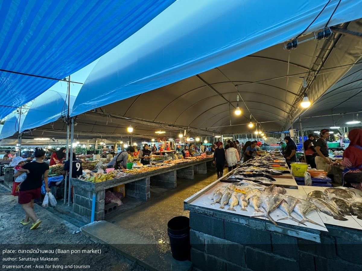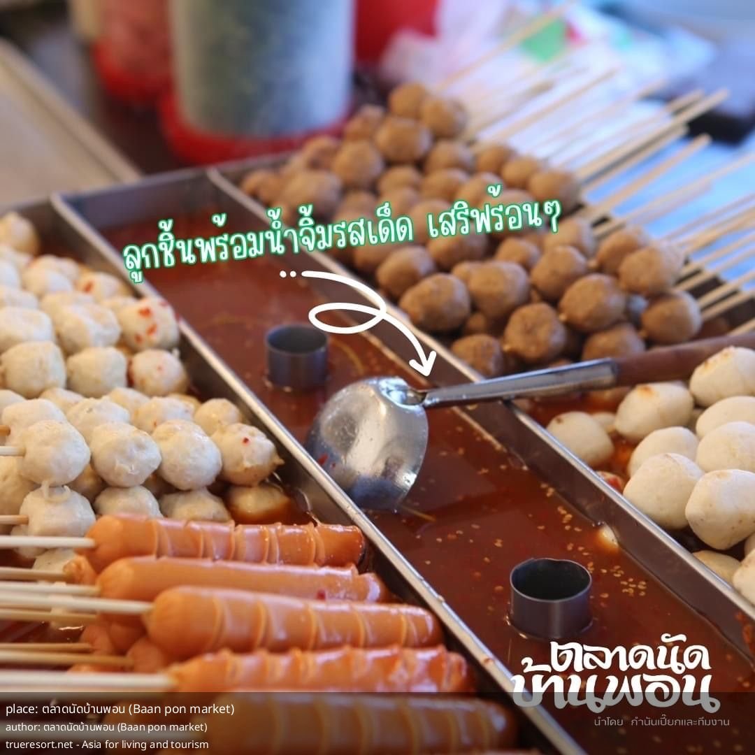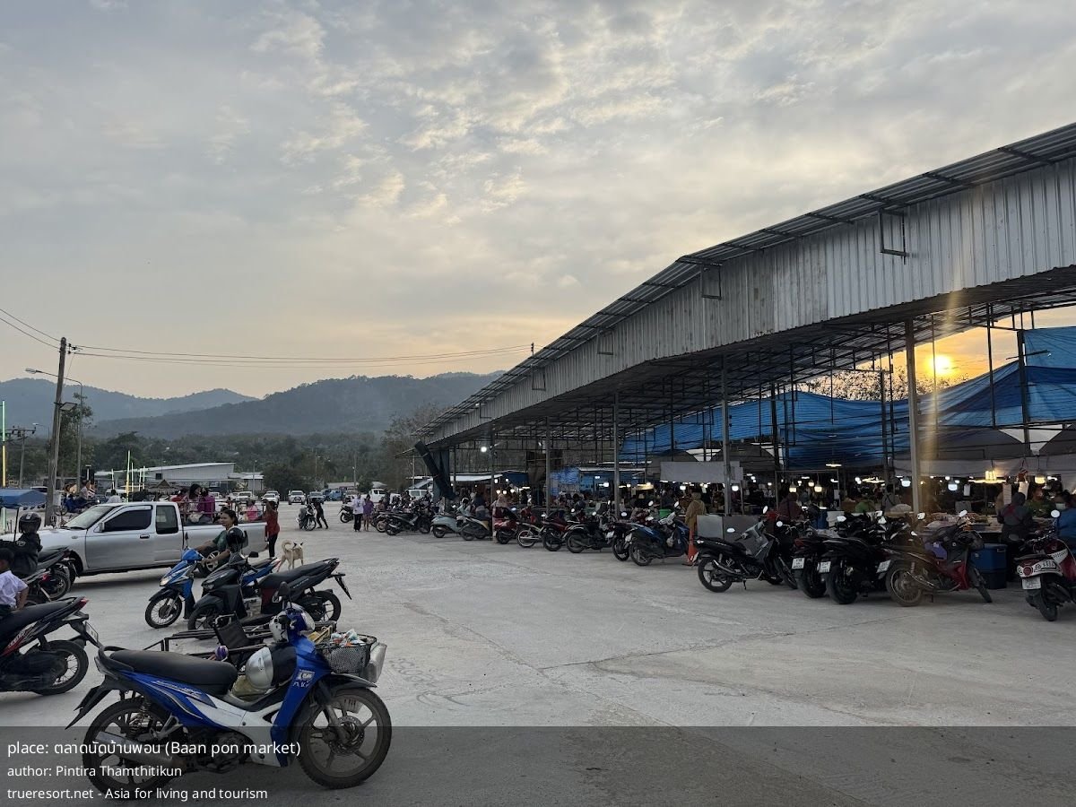 Что делает рынок ตลาดนัดบ้านพอน особенным — безупречная чистота и простор, множество вкусной уличной еды и широкий паркинг для спокойной прогулки