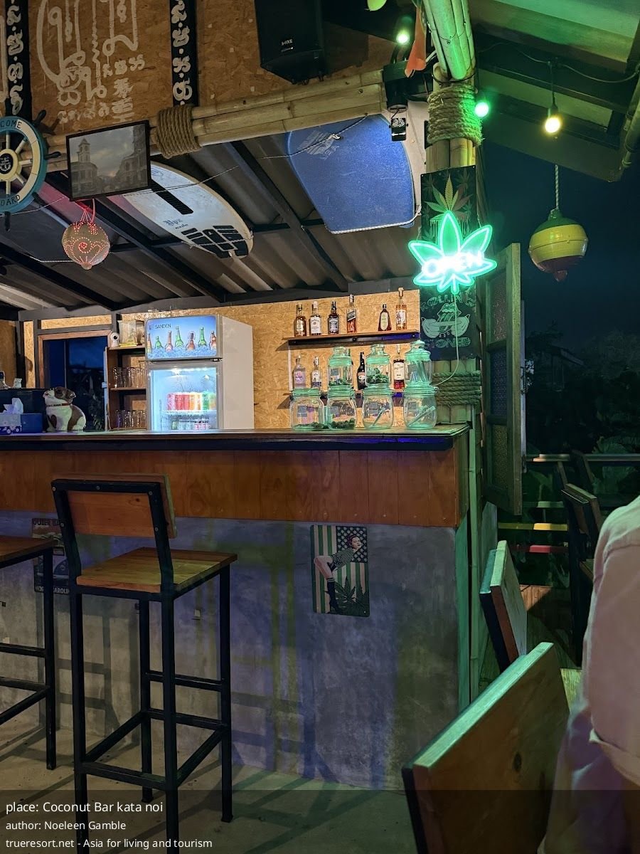 Coconut Bar kata noi по отзывам — небольшой семейный бар с душой, который стоит рассмотреть как недорогую и тёплую альтернативу популярным пляжным клубам; посетители хвалят сервис, атмосферу и подходящие условия для неспешного вечера.