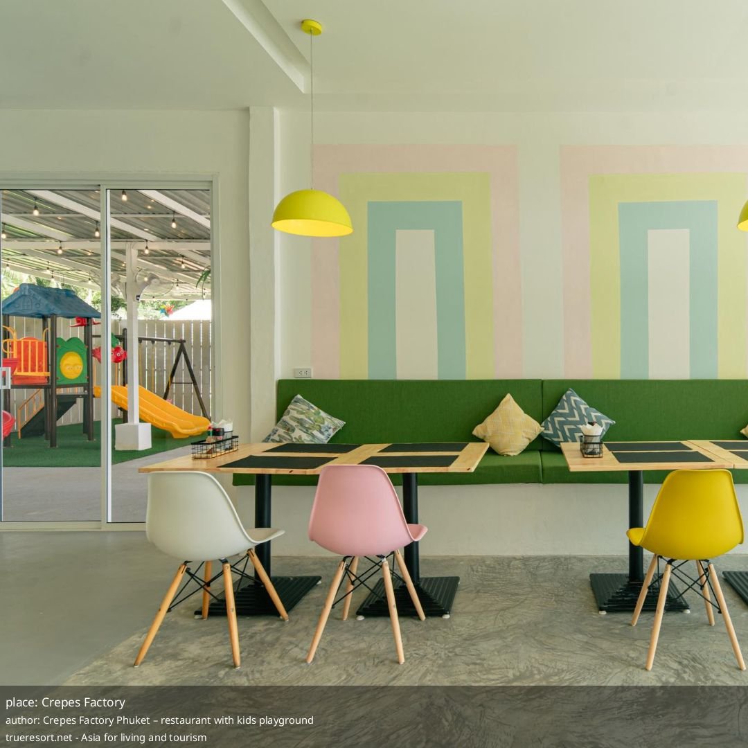 Crepes Factory явно рассчитан на семьи с детьми: есть игровая зона, но описания противоречат друг другу — часть гостей видела большую открытую площадку, другие называют ее внутренней; это говорит о гибкости планировки или о разной интерпретации пространства.