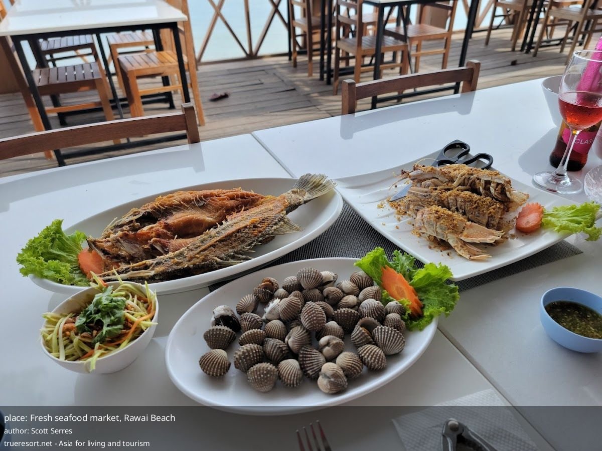 Fresh seafood market на Rawai Beach рушит миф о цене против качества: дорогое меню, но такая свежесть и готовка на месте, что местные возвращаются снова
