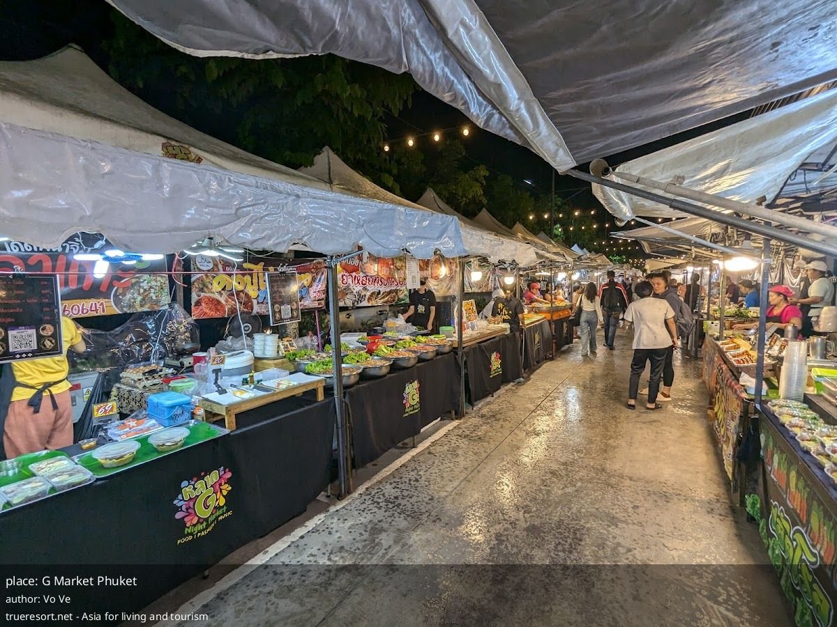 G Market Phuket — вечерний местный рынок и большой продуктовый магазин для долгосрочных гостей в Пхукете, мало туристов, по четвергам закрыт, комиссия при оплате картой