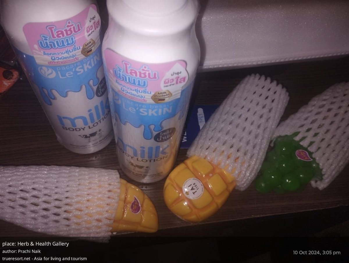 Гости регулярно отмечают большой ассортимент тайских трав и аутентичных товаров для здоровья; один из отзывов называет магазин большим и предлагает широкий выбор традиционных средств. В описании ассортимента фигурируют средства по уходу за кожей, товары для сексуального здоровья и даже продукты животного происхождения, которые некоторые посетители сочли полезными. Отдельно отмечен приятный аромат внутри магазина, который усиливает впечатление от шопинга.
