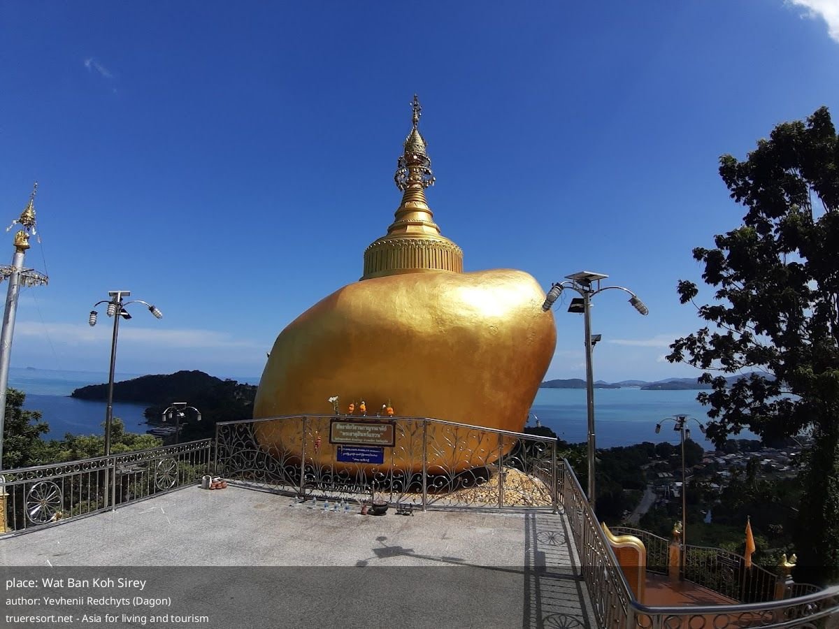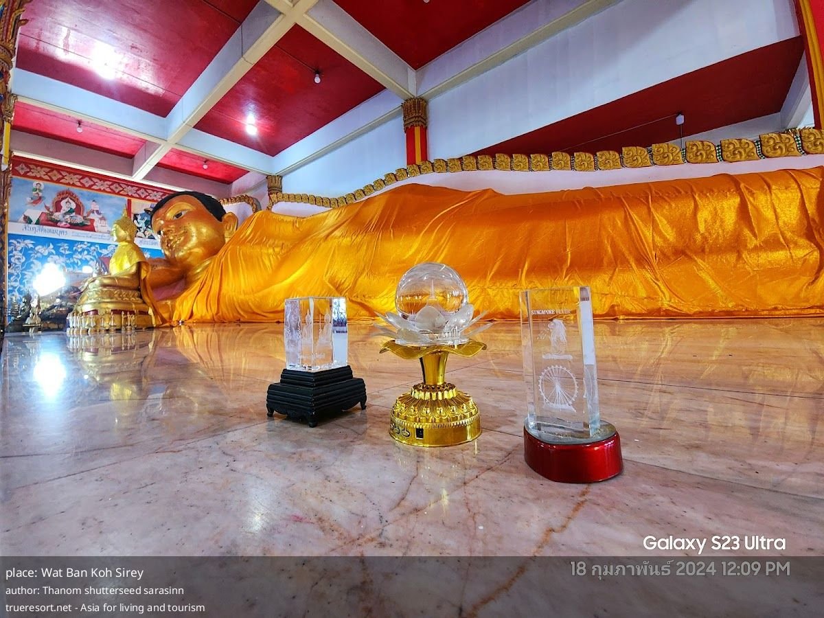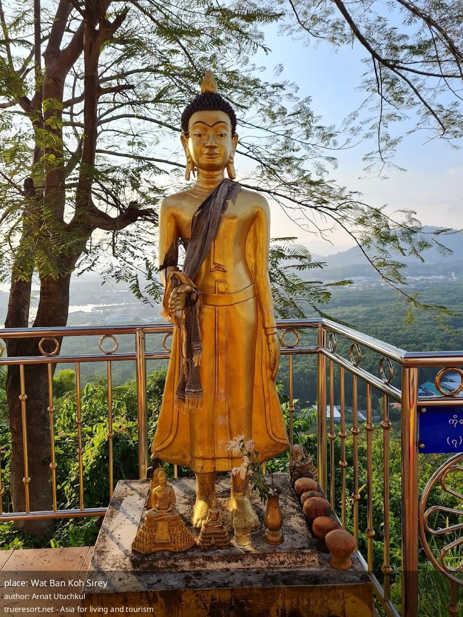 Wat Ban Koh Sirey по отзывам — тихая обзорная точка с лежащим Буддой и реальной возможностью поймать фотографию острова Koh Sirey на фоне захода солнца. Это место для тех, кто ценит спокойные виды и короткие остановки в маршруте; если вы ищете сложную архитектуру или многолюдную святыню, ожидания могут не совпасть с реальностью.