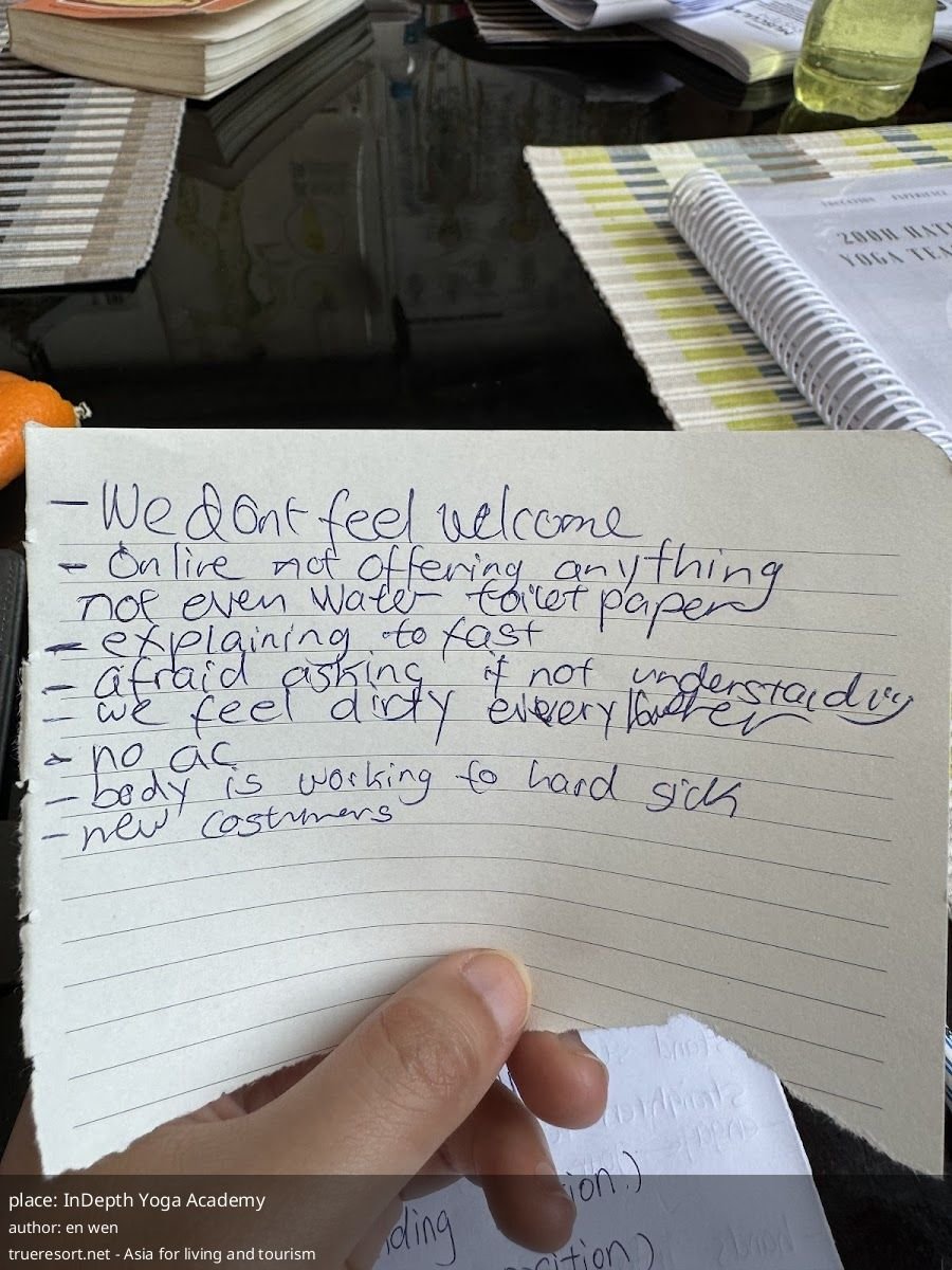 - Один крупный отрицательный отзыв утверждает, что занятие проводится в жилых условиях, с плохой чистотой, отсутствием кондиционирования и маленьким, неблагоустроенным бассейном; автор также жаловался на гостеприимство и организацию сервиса.