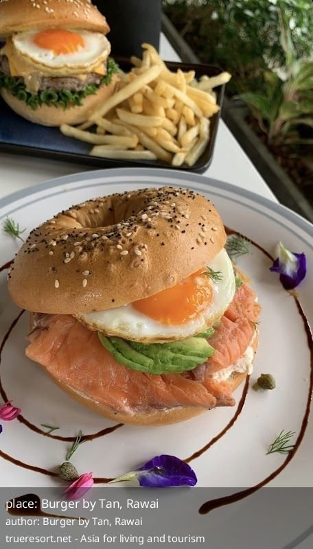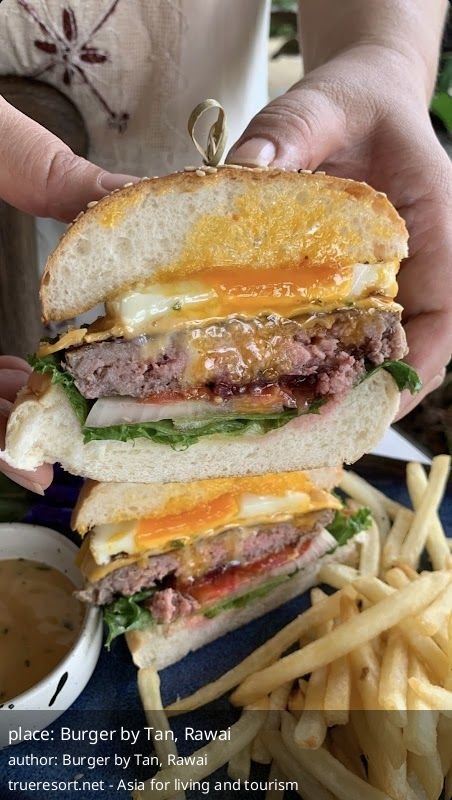 Ресторан Burger by Tan, Rawai — точка быстрого питания в районе, где рядом несколько гостиниц и продуктовый магазин First Smokehouse Rich&Art Phuket. Работает с полудня до 21:00 шесть дней в неделю, по воскресеньям закрыт. Заведение допускает животных. Рядом доступны как собственная стоянка, так и уличная парковка без оплаты.