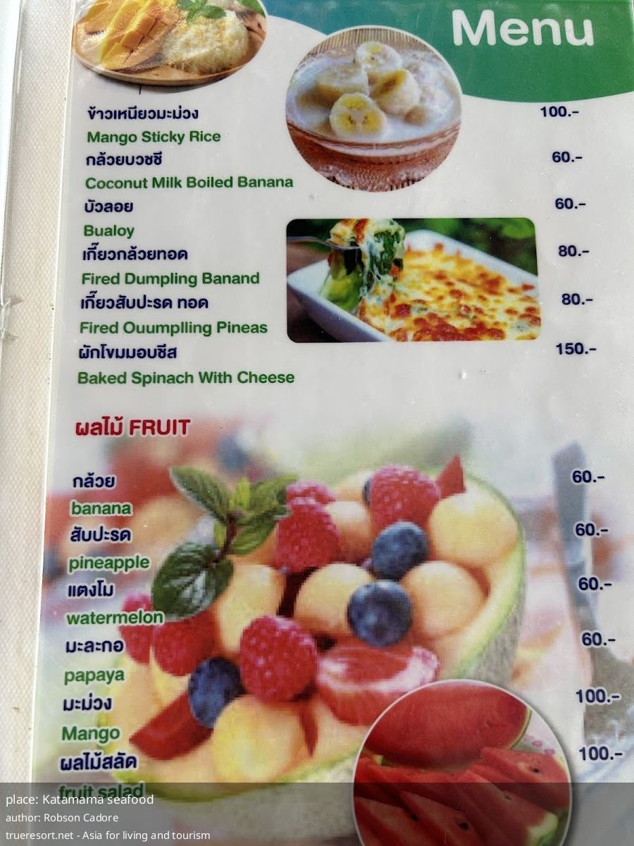- Конкретный пример плохого соотношения цена/объём: креветки в беконе — 300 бат за шесть маленьких штук с гарниром; лучше разделить более крупное морское блюдо на двоих, чем тратиться на этот апперитив.