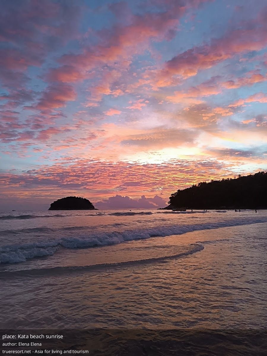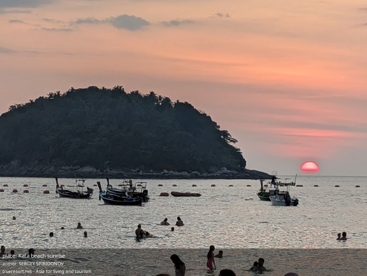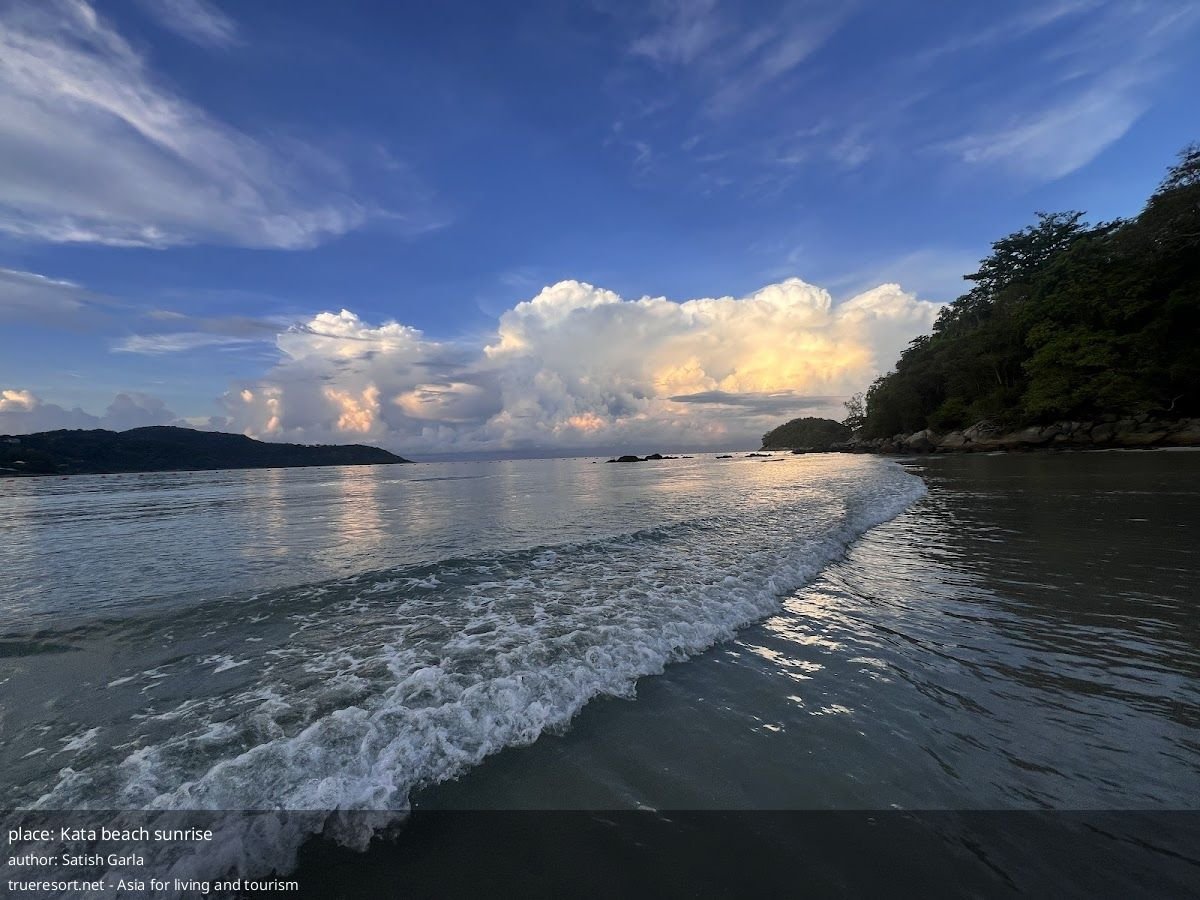 Kata Beach Sunrise — идите пешком вдоль пляжа, не по Google maps; ранним утром при низком приливе лучшие фото, учтите толпы и отсутствие вида на закат, рядом кафе