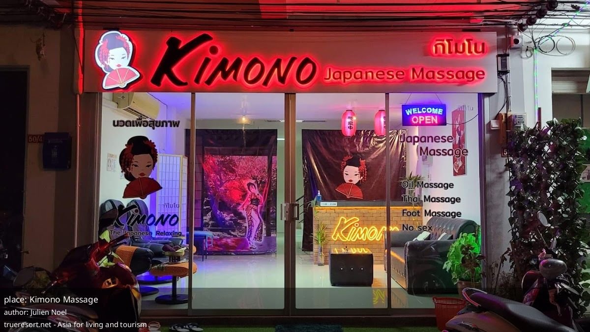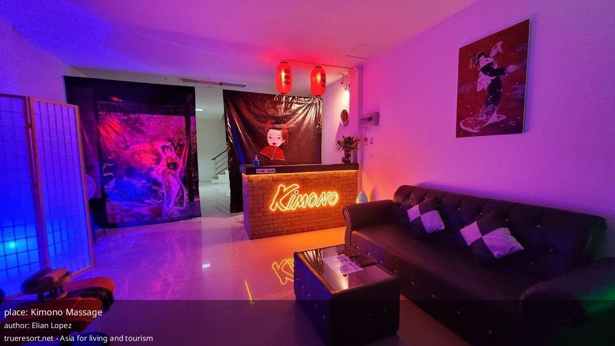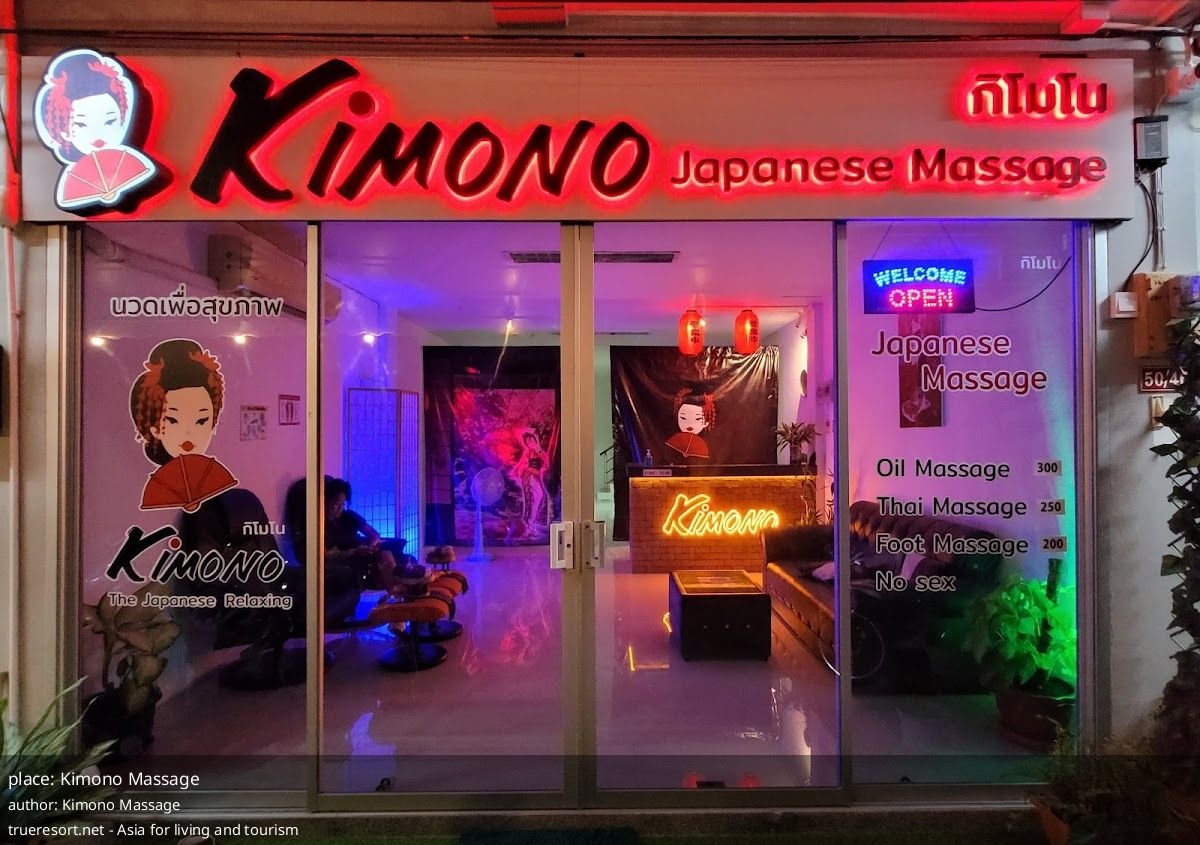 Kimono Massage имеет средний рейтинг 4,8 из 5 на основе 65 отзывов и работает ежедневно с 13:00 до 23:30.