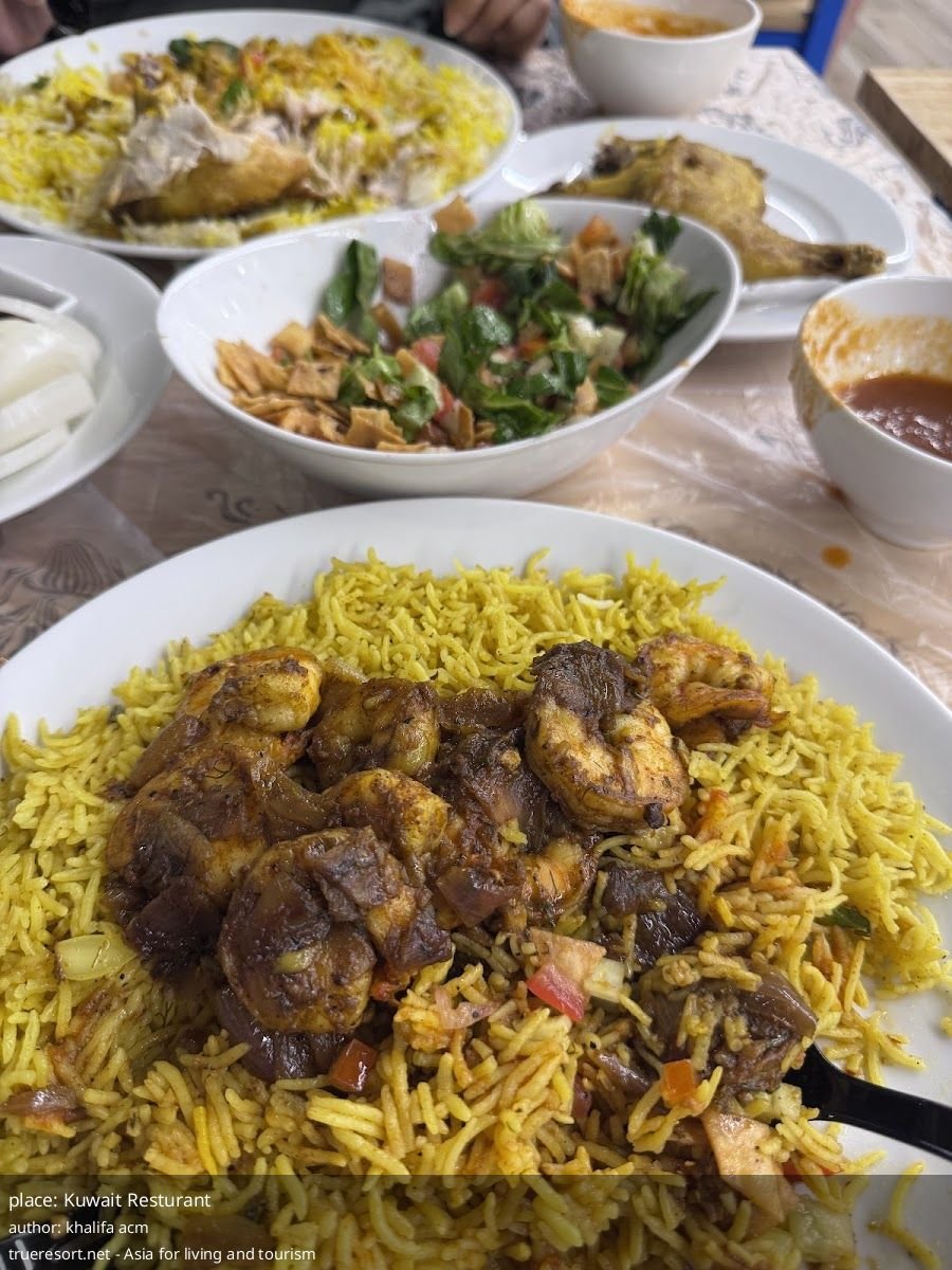 Есть яркие свидетельства хорошей кухни: один посетитель отмечает отличные блюда с кувейтским вкусом и считает заведение обязательным к посещению, другой подчёркивает искреннюю гостеприимность и аккуратную подачу традиционных блюд Персидского залива. Одновременно встречаются претензии к конкретным блюдам: в одном отзыве главный герой — мясной мэжбус — отмечен как неудачный из‑за недостаточной прожарки риса и пересушенного мяса. Ещё один гость, давший среднюю оценку, сравнил это место с соседними точками на той же улице и признал его лучшим среди конкурентов, особенно отметив корректную пряность по запросу и внимательность официанта при добавлении овощей.