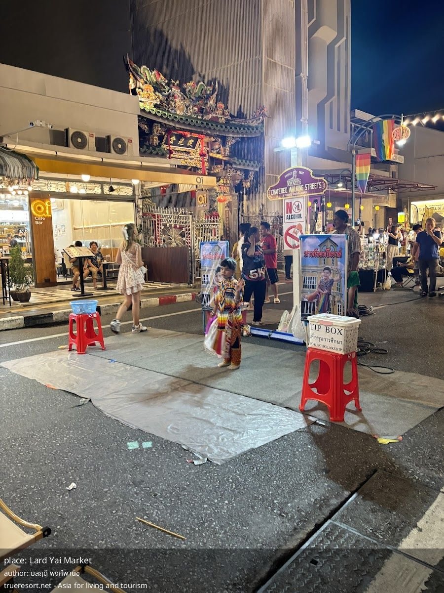 Гости находят на рынке изделия молодых предпринимателей: хлопковые футболки ручной печати, кастомные шлепанцы, игрушки, бижутерия и ткани с принтами. Уличные выступления, караоке и живая музыка создают вечернюю атмосферу; несколько отзывов подчеркивают, что артисты любят чаевые.