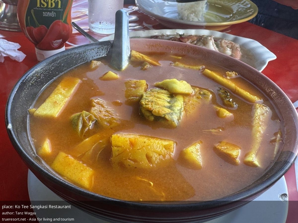 Кухня ориентирована на южно-таиландские вкусы: ярко остро и насыщенно. В отзывах чаще упоминают острый рыбный суп с выраженной кислотностью и онемением, хрустящую капусту с жареной свининой, красное карри с кокосовым крабом и курицу с кешью; свежесть морепродуктов также отмечают. Для семей это значит: будьте готовы к сильным пряностям и планируйте либо выбирать менее острые позиции, либо просить персонал снизить остроту.