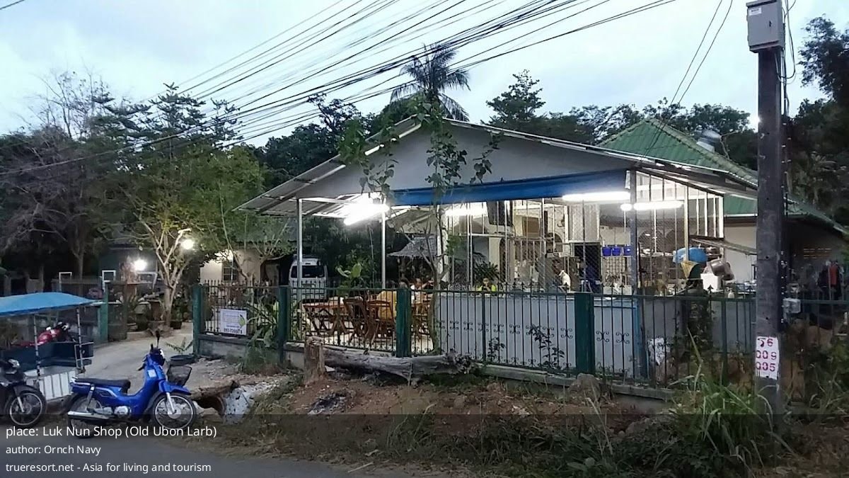 Заведение работает ежедневно утром и вечером, но закрыто по субботам — важная деталь для тех, кто строит маршрут по острову. Рядом расположены хостел, отель, прокат авто, массажные салоны, пекарня и сервис по ремонту техники, что делает остановку у Лук Нун логичным пунктом в маршруте дня у пляжа или при планировании трансфера.