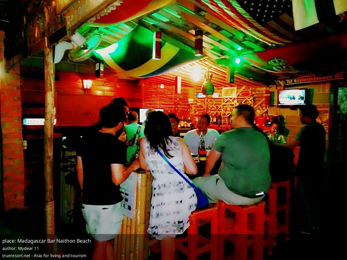 Madagascar Bar Naithon Beach — вариант для тех, кто ценит качественные коктейли, свежую тайскую еду, интимную музыкальную атмосферу и дружелюбный семейный сервис в большинстве случаев. Тем, кто зависит от безналичной оплаты или кто непримирим к даже редким проколам в обслуживании, стоит учитывать упомянутые свидетельства о переменчивости сервиса и брать с собой наличные.