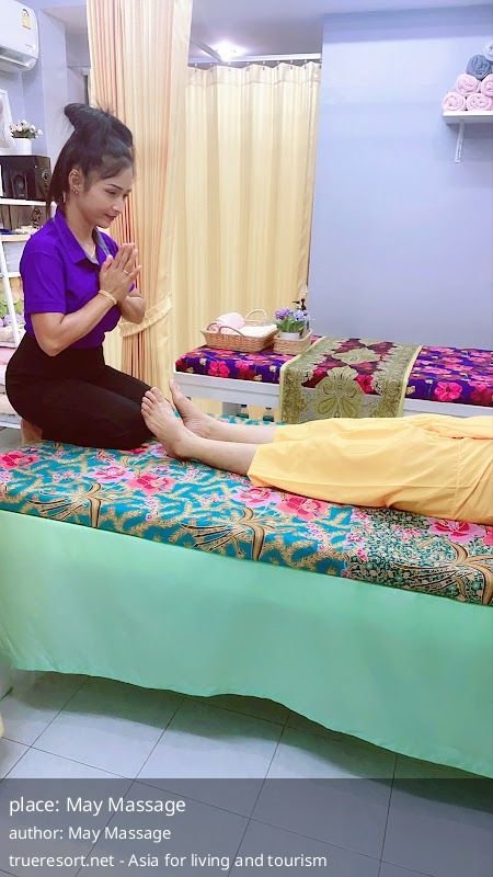 Небольшая частная массажная студия May Massage с рейтингом 4.9 на основе 405 отзывов получила репутацию места, где делают тайский массаж и кокосовый массаж с явным терапевтическим акцентом.