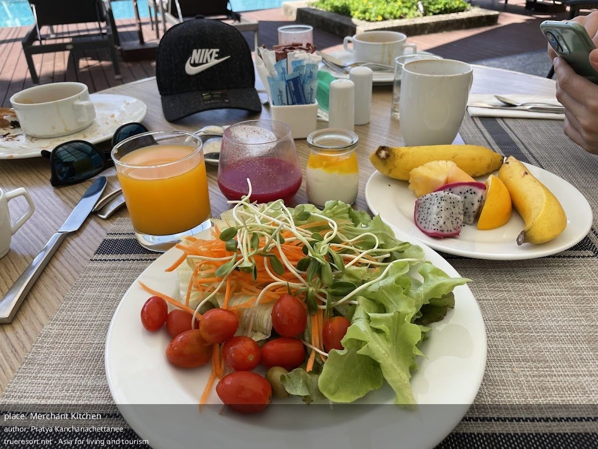 Завтрак здесь — это то, где ресторан чаще всего попадает в точку: большой шведский стол с заметным разнообразием, секцией безглютеновых хлебобулочных изделий, впечатляющим выбором злаков и сыров, а также ярко обозначенными аллергенными табличками. Персонал способен выполнить персональные запросы на месте — приготовили овсянку на соевом молоке по просьбе и вынесли дополнительные мини-пончики клубничные. Однажды гостю подали салат Phuket Waldorf, которого не было в меню, после проверки на кухне. Внешняя терраса обеспечивает вид на бассейн, а порции часто оказываются щедрыми и свежими — фрукты в салате были сочные, заправка сбалансирована.