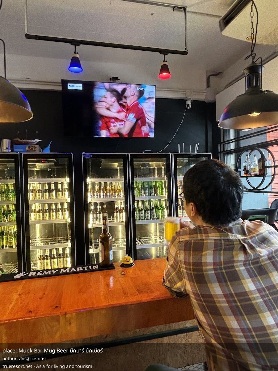 Muek Bar Mug Beer มึกบาร์ มักเบียร์ в городе: уютный бар с большим выбором пива, выгодными акциями и бутылочными предложениями — идеален для компании и спорта