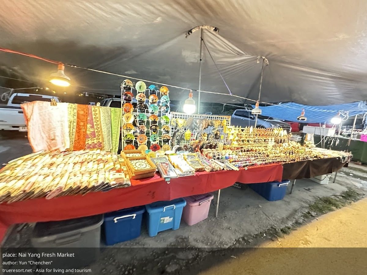 Короткий ответ: компактный вечерний рынок с настоящими уличными едой и продуктами, удобен для тех, кто живёт у Nai Yang Beach или едет из Mai Khao; у посетителей сложились разные впечатления о чистоте и ассортименте.