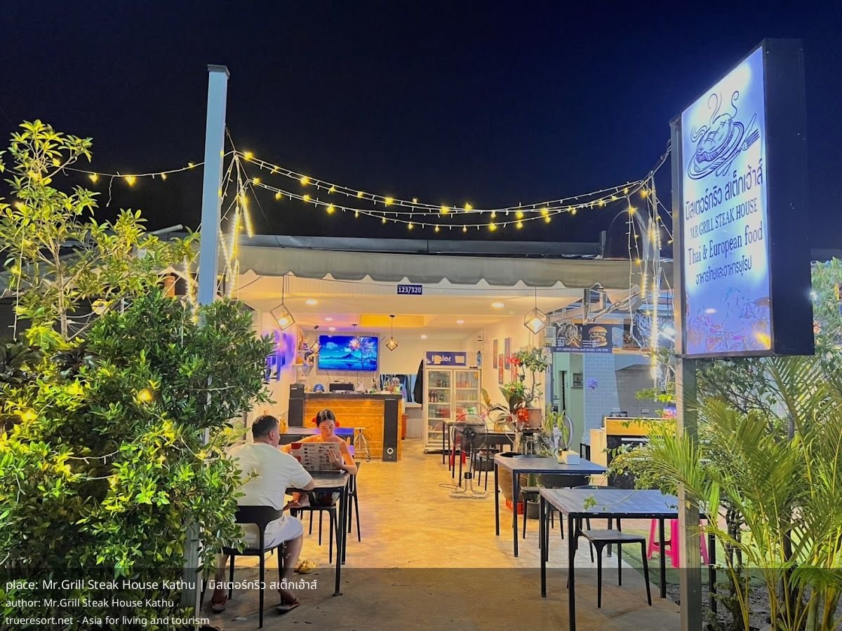 Небольшой ресторан Mr.Grill Steak House Kathu расположен прямо у обочины и получил оценку 4.7 из 5 на основе 30 отзывов — высокий рейтинг для простого заведения, которое не маскирует свою бюджетную направленность.