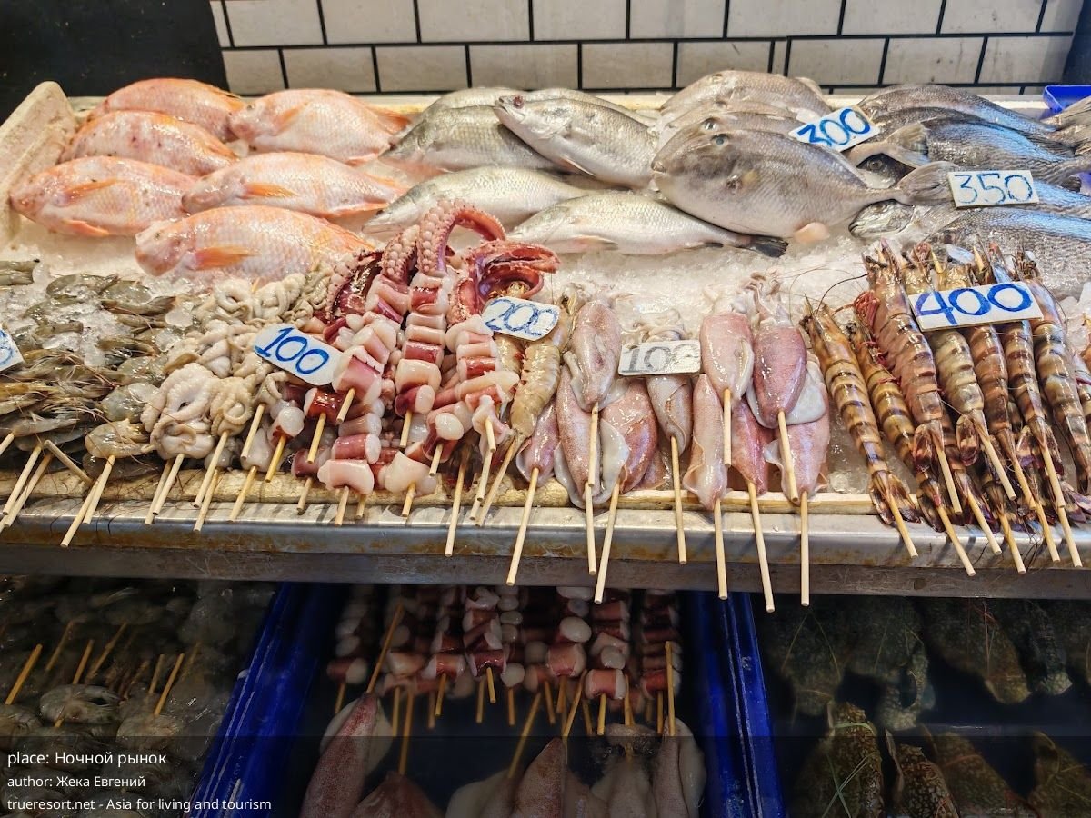Ночной рынок: рай для гурманов — огромное разнообразие уличной еды, продавцы помогают найти место, порции щедрые, идеален для пробующих всё