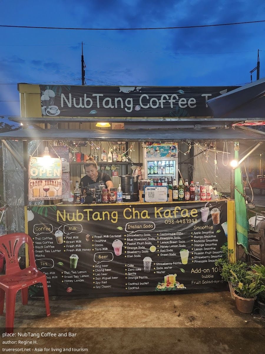 Если вам нужен небольшой, недорогой и круглосуточно доступный пункт с качественными напитками — от классического тайского кофе до bubble tea и коктейлей — отзывы подтверждают, что NubTang Coffee and Bar стабильно это обеспечивает при дружелюбном сервисе. Ожидайте камерного уличного формата, быстрых рук бариста и удобной бесконтактной оплаты.