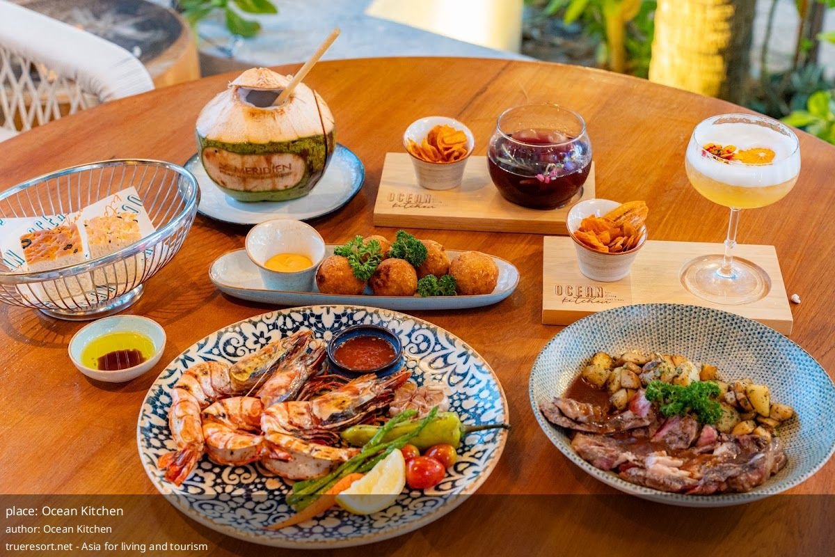 Ocean Kitchen — бар-ресторан при отеле Le Méridien Mai Khao Beach с открытой террасой, которая выходит на бассейн и пляж; несколько гостей также отмечали великолепные закаты. На основе 65 отзывов средняя оценка заведения 4.3/5.