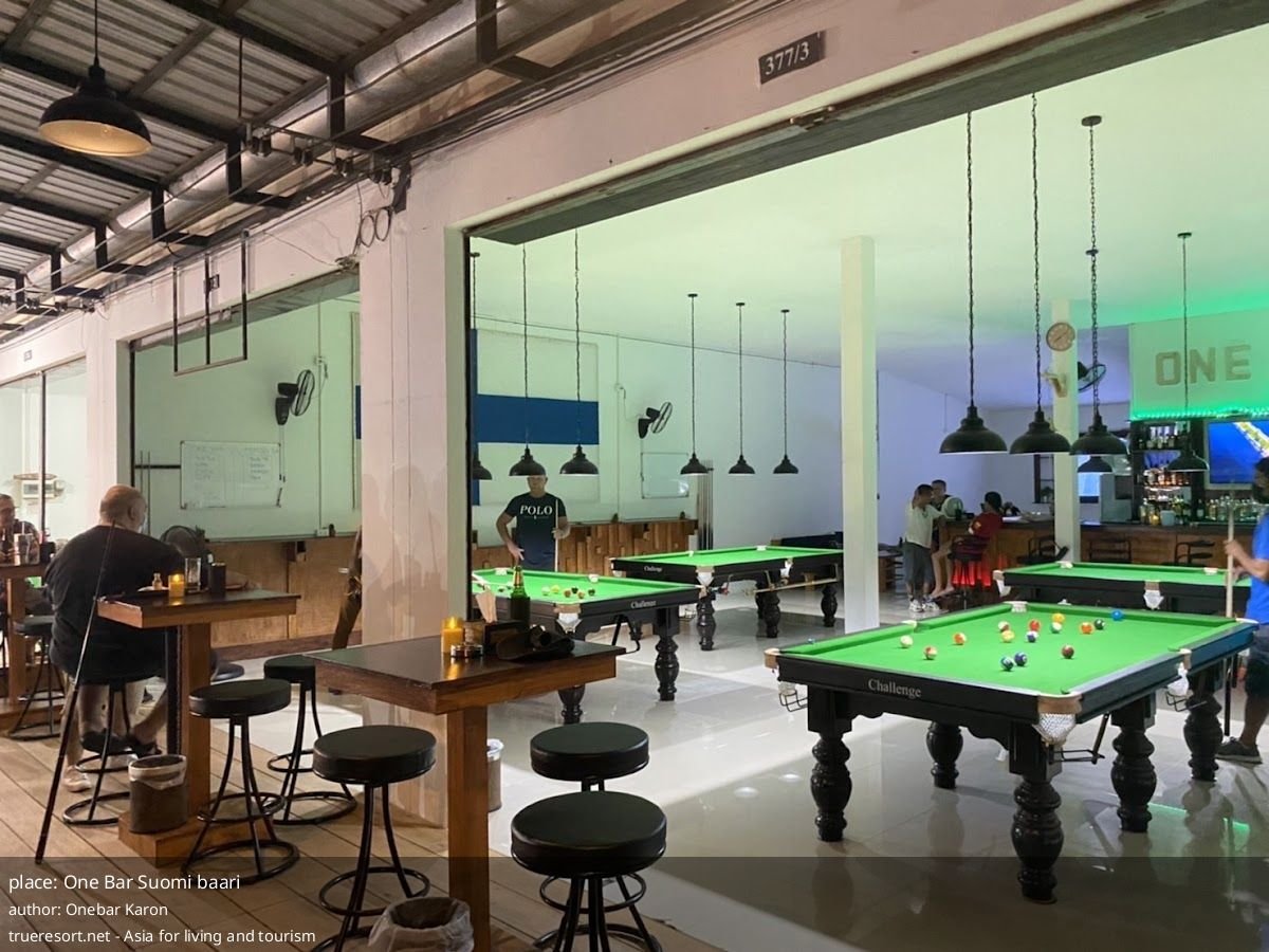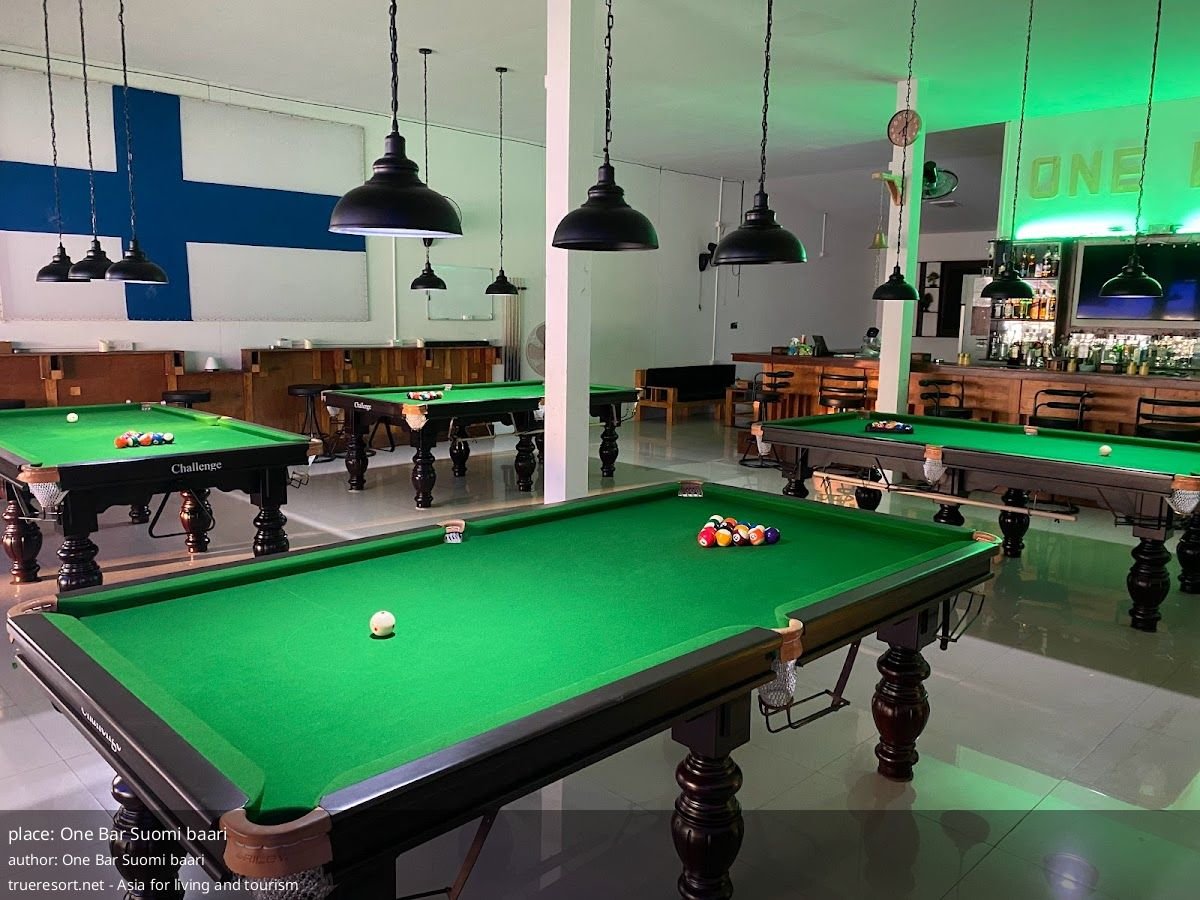 One Bar Suomi baari — рай для любителей пула: четыре профессиональных стола, домашняя кухня хозяина и тёплая атмосфера