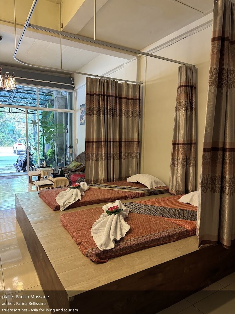Pantip Massage имеет оценку 5 из 5 на основании трёх отзывов; посетители отмечают стабильное качество сеансов, дружелюбие персонала и способность решать острые боли. Салон работает ежедневно с 10:00 до 22:00.
