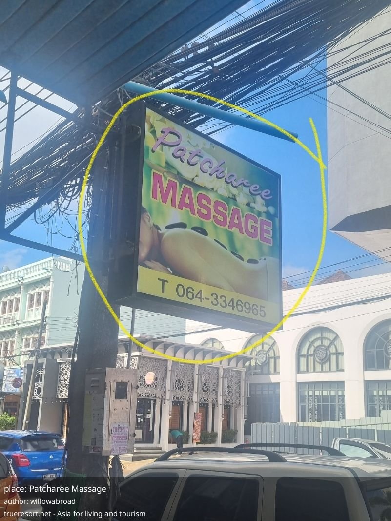 Patcharee Massage — открыт до полуночи и рядом с отелями, но часто предлагает слишком мягкий, непрофессиональный, неаутентичный тайский массаж
