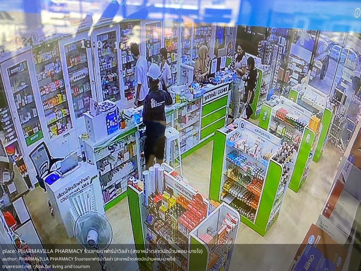 - Окружение: аптека расположена у рынка Baan pon market и рядом с несколькими ресторанами и киосками.