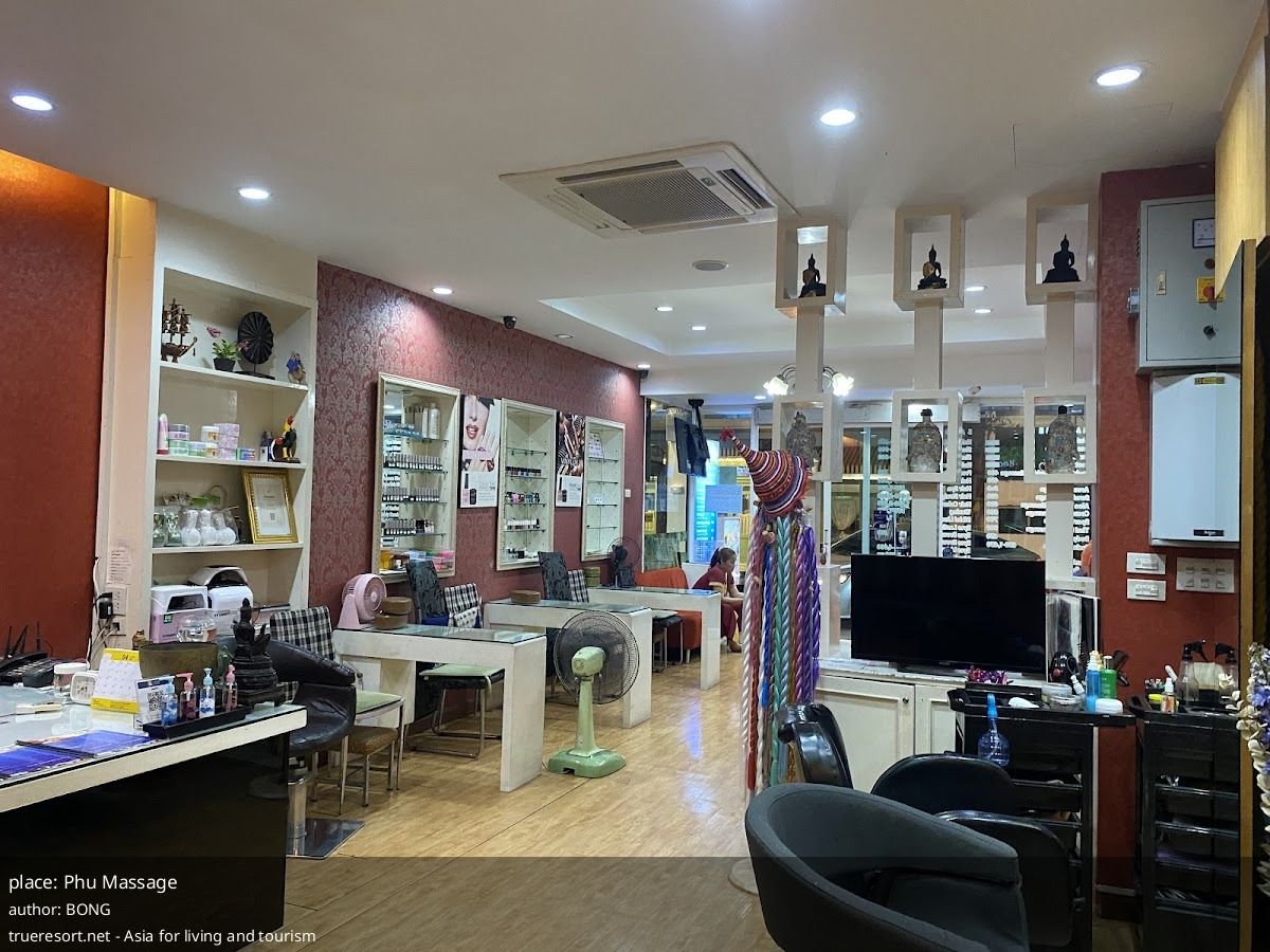 Рядом с Phu Massage в окружении обнаруживаются продуктовые магазины и другие массажные салоны, в том числе заведения, ориентированные на туристов в районе Kata Beach, что даёт выбор посетителю при сравнении услуг и цен.