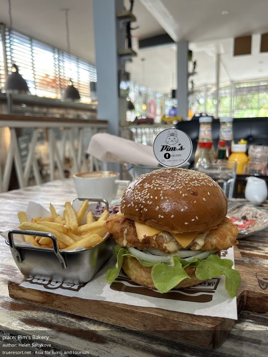 Коротко для тех, кто экономит время: Pim's Bakery — местная пекарня-кафе в Пхукете с оценкой 4.6 на основе 257 отзывов. Работает ежедневно с 9:00 до 18:00, кроме среды. Принимает дебетовые карты и бесконтактные платежи; не является только наличным. Имеется бесплатная парковка на территории и бесплатная уличная парковка.