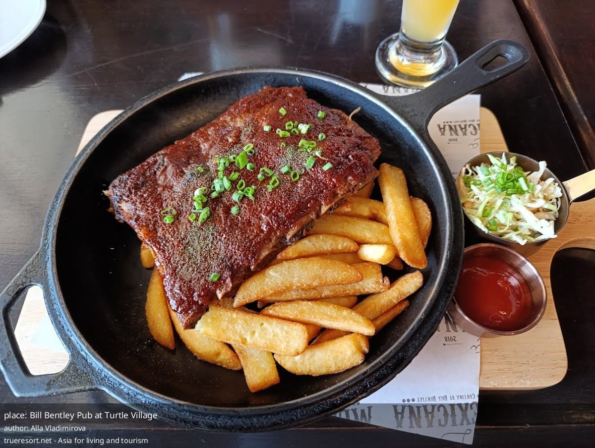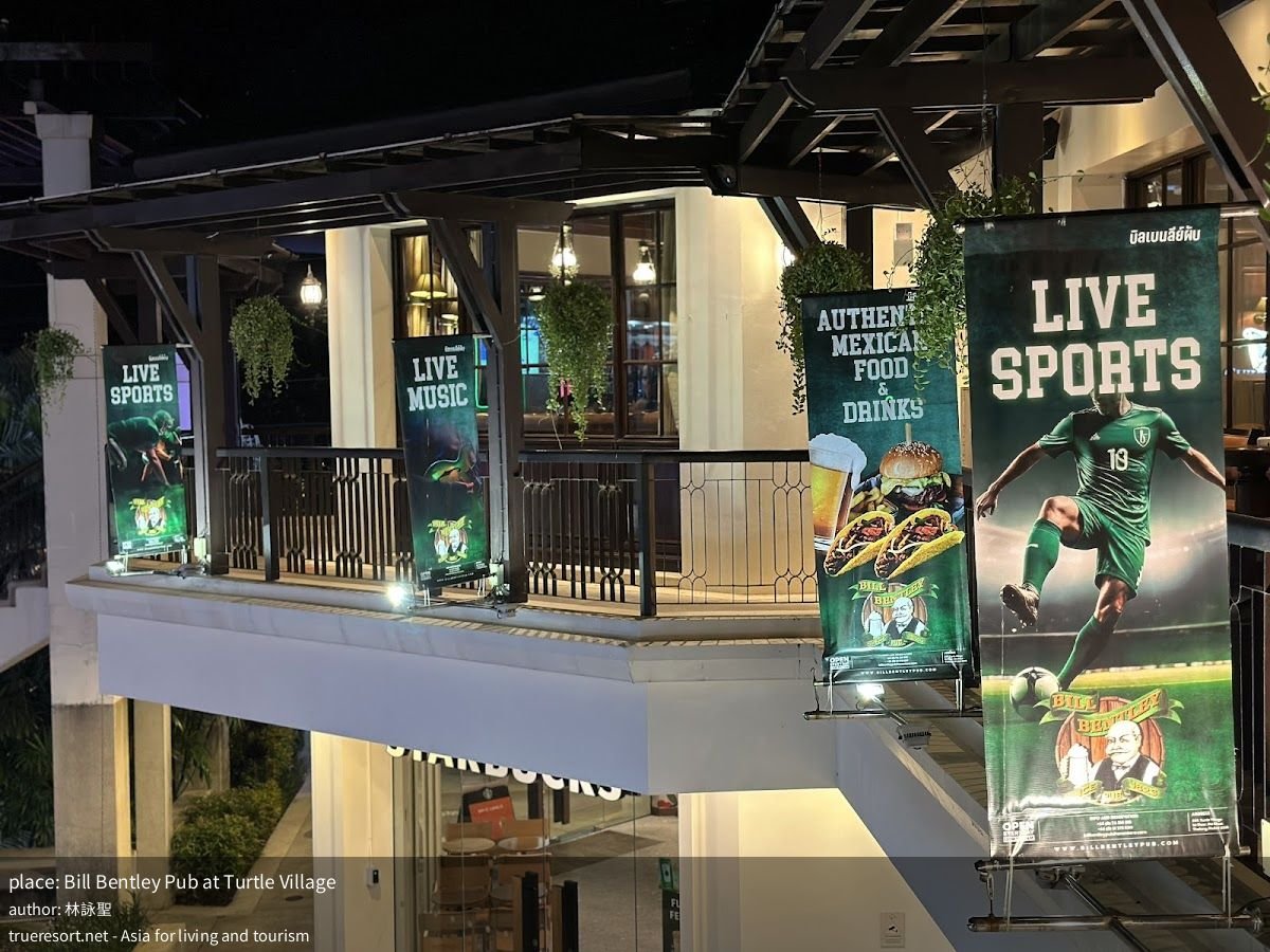 Bill Bentley Pub at Turtle Village — вариант для тех, кто хочет сменить тайскую кухню на качественную западную еду в сочетании с коктейлями и живой музыкой. Гости хвалят еду, отмечают дружелюбный сервис и удобную логистику по парковке и оплате. Если планируете семейный вечер с детьми или небольшое празднование, приезжайте пораньше — особенно ради happy hour и больших порций для делёжки.