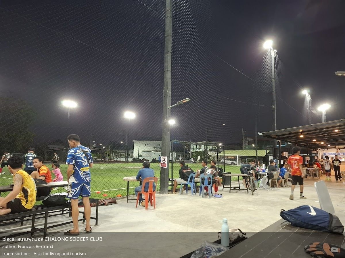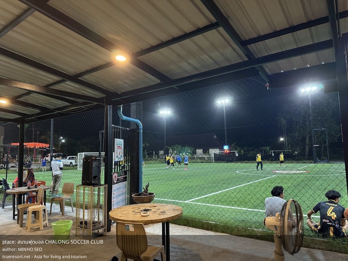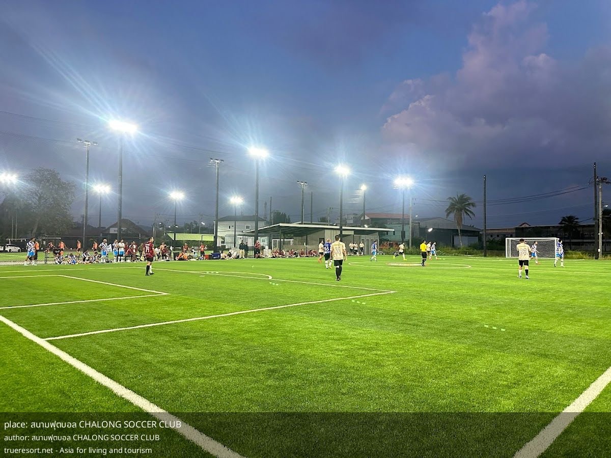 CHALONG SOCCER CLUB в Чалонге — хорошо ухоженные поля, два новых покрытия, рабочие часы до 23:00 и вечернее освещение, душевые и санузлы, бар и закусочная, просторная парковка и отзывчивый персонал. Отличный выбор для вечернего футбола в Пхукете при условии предварительной договорённости по аренде.